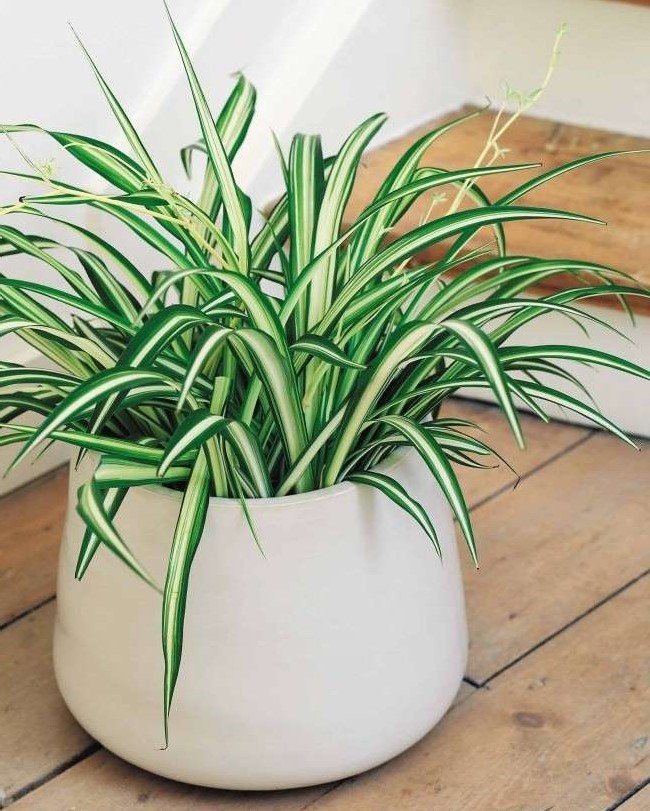 Сорта хлорофитума Vittatum, Variegatum, Bonnie с контрастными белыми и зелеными продольными полосами нуждаются в хорошем освещении для того, чтобы показать себя во всей красе.