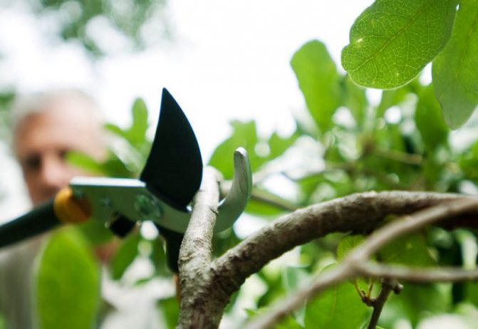 При обрезке удаляют засохшие и поломанные ветви, делать это нужно осенью, после опадения листвы. Обрезку можно проводить и ранней весной, но делать это нужно до начала активного движения соков в тканях. Но это требует определенного опыта, иногда со временем можно ошибиться и нанести вред растению.