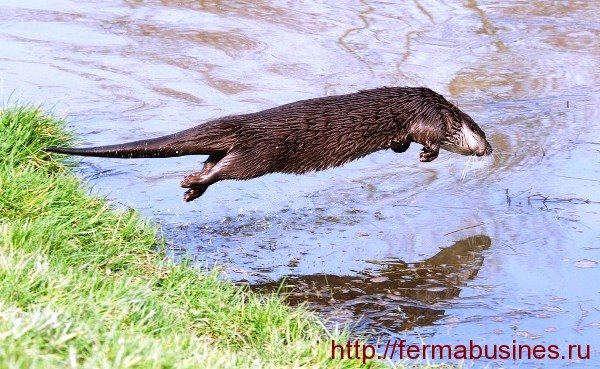 Отличить выдру от ондатры легче простого. Длина этого зверька достигает 55-95 сантиметров, длинный и сильный хвост 26-55 сантиметров и окрас на спине более тёмный.