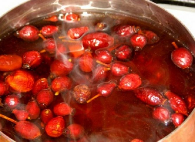 - Литр воды доводят до кипения, отправляют туда шиповник, дают покипеть в течение 5 минут.