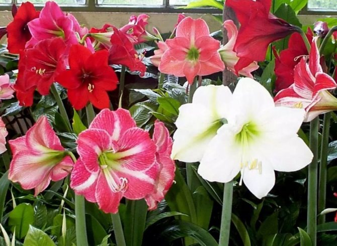 Суеверия не запрещают выращивать не один, а несколько многолетников. Можно создать эффектную композицию из разных по цвету гиппеаструмов, которая будет радовать цветением в зимние месяцы.