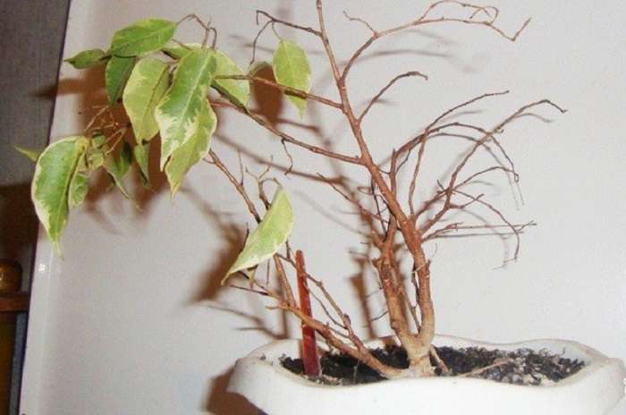 - эти условия фикусу не подходят, поэтому крона начинает редеть;