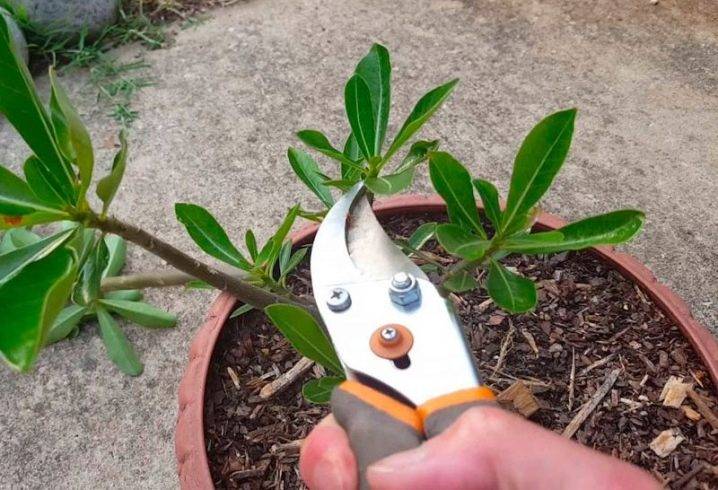 С помощью обрезки формируют крону, ствол и корень Адениума. Почки обладают разной активностью, в зависимости от своего расположения.