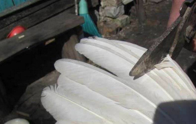 Практикуют также обрезку через одно перо. Гусыням, уткам, садящимся на яйца, подрезание не проводят с целью сохранности потомства.