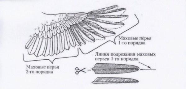Важно! Во время обрезки перо укорачивают до начала воздушных трубочек, иначе птица ощутит сильную боль.