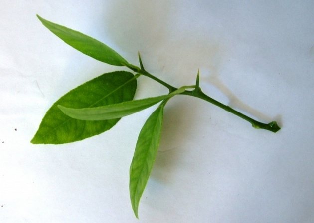 Правильно приготовленный черенок лимона должен иметь 2-3 листика и 3-4 оформившиеся почки. Расстояние между концами срезов и крайними почками около 0,5 см. Длина чубучка 8-10 см, толщина 4-5 мм.