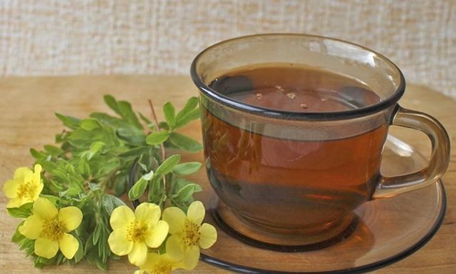 В основном народная медицина предлагает делать полезный чай на основе кустарниковой лапчатки. Также из растения можно готовить настои и отвары, спиртовые средства и составы для растираний.