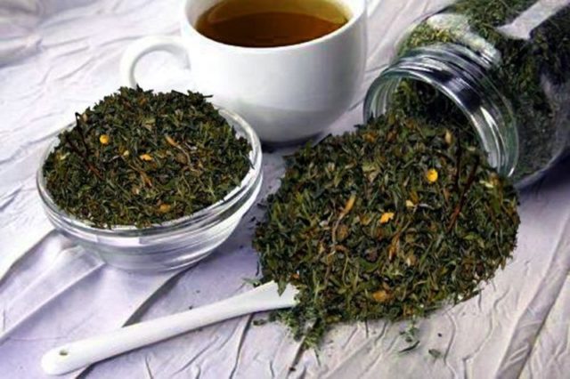- В термос засыпают три больших ложки сухих стеблей и листьев растения.