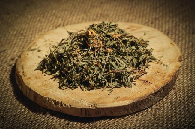 - Измельчают две большие ложки сухой травы растения.