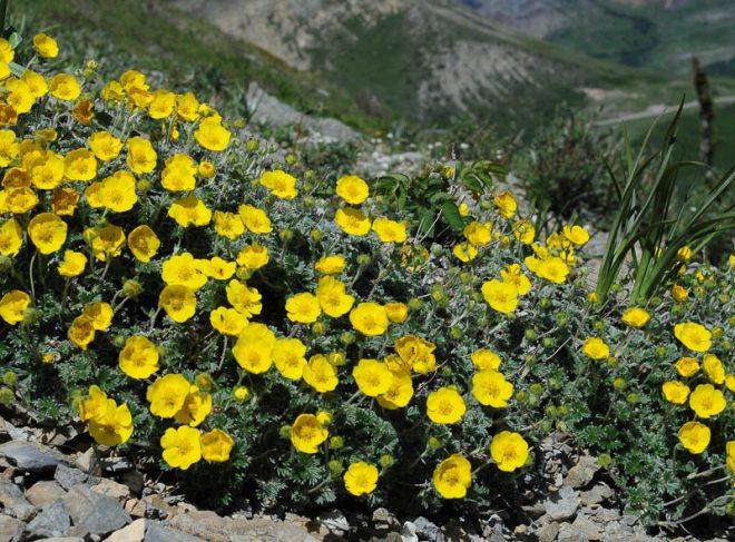- Условия выращивания: Устойчивый к морозам, выносливый вид лапчатника. В уходе неприхотлив, хорошо приживается на солнечных и тенистых участках. Растет быстро – до 13 см за год.