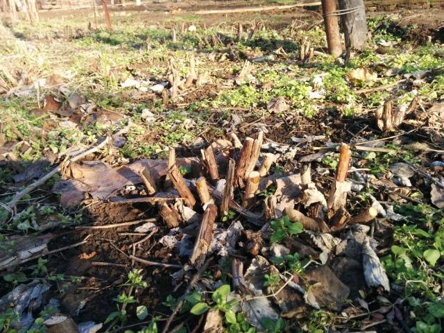 - Если вы оставили побеги, то их снимают с опоры, связывают между собой, пригибают к почве, укрывают насыпью земли, агроволокном. Такой способ защиты осуществляют на Урале, в Сибири и европейской части России. На Юге страны зимы не холодные, поэтому можно обойтись без укрытий.