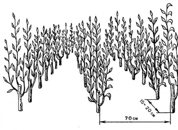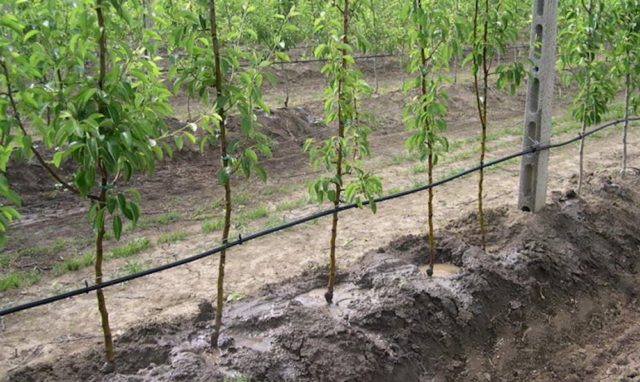Также можно использовать куриный помёт или перегной. Деревья размещают в 50 сантиметрах друг от друга, а между рядами оставляют расстояние в 1 метр. Опуская саженец в ров, нужно проследить, чтобы его корни были тщательно расправлены. После этого надо хорошо полить землю в прикорневом круге.