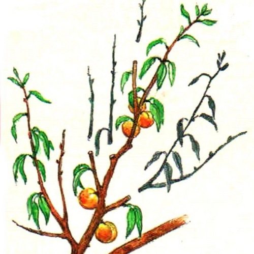 - Формирующая – выполняют по весне и осенью, удаляют лишние побеги и создают скелетную основу персикового дерева.