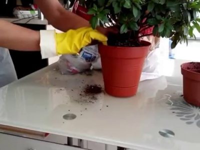 Всё это следует смешать в емкости, затем добавить речного песка в качестве разрыхлителя. В горшок нужно положить дренаж. После того как почва и горшок подготовлены, растение нужно достать из старого горшка и поместить в емкость с водой примерно на 30 минут.