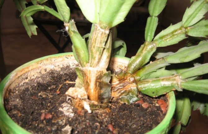 Грибок последнего проникает не только с грунтом, но и через ранки зигокактуса, что приводит к загниванию корней и шейки растения.