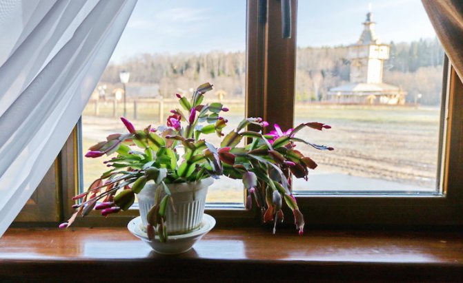- Во-первых, декабристу неуютно на южных и западных подоконниках, поскольку интенсивное освещение может стать причиной отмирания конечных сегментов побегов растения.