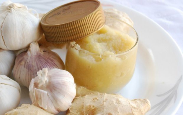 - приготовив теплый имбирно-медовый чай с добавлением перетертого чеснока;