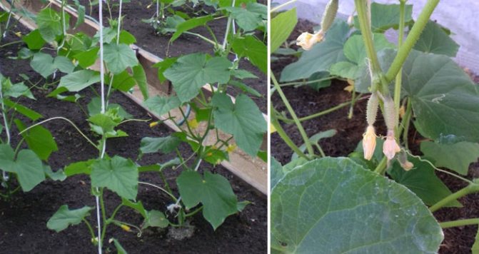 - Как только огурец дорастает до отметки 1,3 м, боковые отростки должны быть примерно 35-40 см, на каждом из них оставляют 2-3 завязи и такое же количество листов.