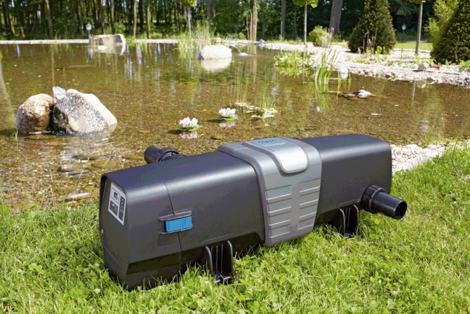 - Ультрафиолетовый стерилизатор. Благодаря ему, рыбки для пруда не задохнутся из-за цветения воды.