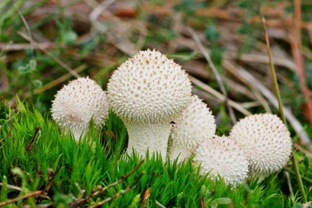 В молодом возрасте шиповатый дождевик белый, но по мере взросления буреет