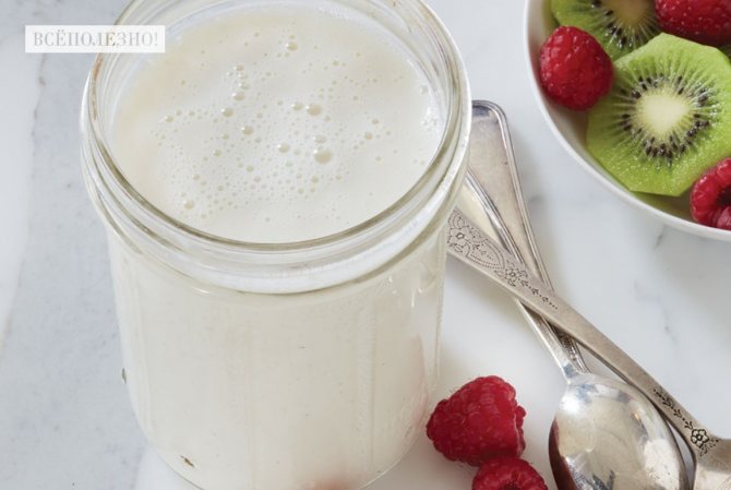 Необходимые ингредиенты: обычное молоко из магазина (1 л) и закваска. В качестве закваски подойдут 2 ч. л. магазинного кефира или такое же количество сметаны.