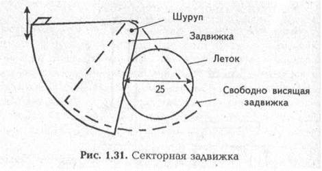 Регулировать размер летка лучше при помощи круглой или секторной задвижки, которая прикрепляется к передней стенке при помощи одного шурупа (рис. 1.31).