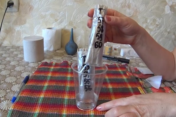 - Устанавливают трубочку в пластиковый стаканчик или другой сосуд с налитой на дно слоем 1-1,5 см водой. Край с семенами должен располагаться сверху. Все скатки можно поместить в одну емкость.
