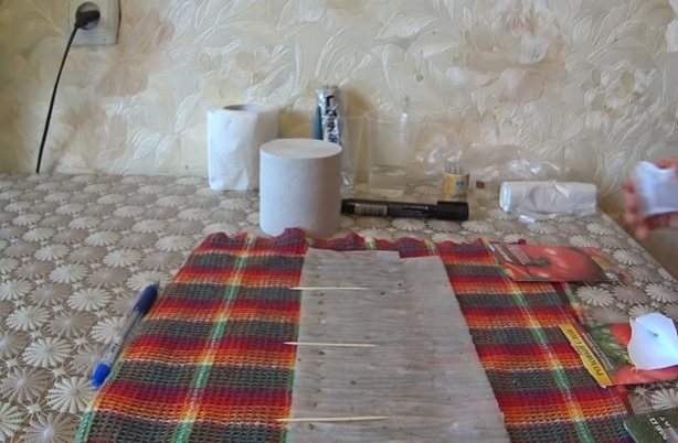 На подложку из целлофана укладывают 2-3 слоя туалетной бумаги, смачивают чистой водой или раствором: