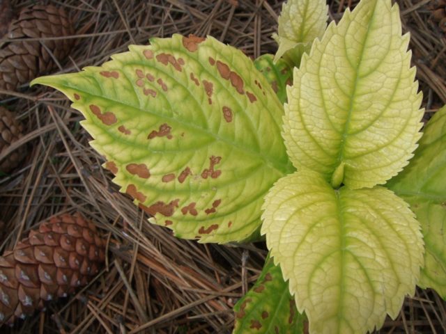 Одной из наиболее частых причин того, что листья гортензии начинают желтеть, является ее поражение различными вирусами или микроорганизмами. Как и у большинства других декоративных растений, у нее есть типичные заболевания, которые могут привести не только к увяданию, но и к полной гибели кустарника.
