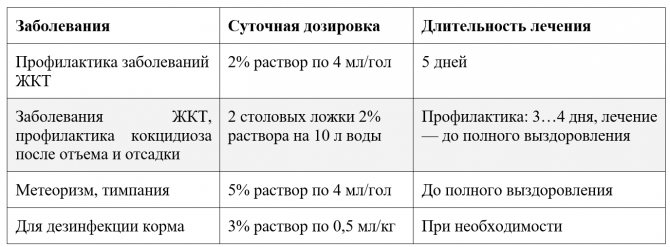 - Для лечения и профилактики алиментарных заболеваний, Молочную кислоту используют с питьем либо кормом при следующих дозировках, согласно данным прилагаемой таблицы.